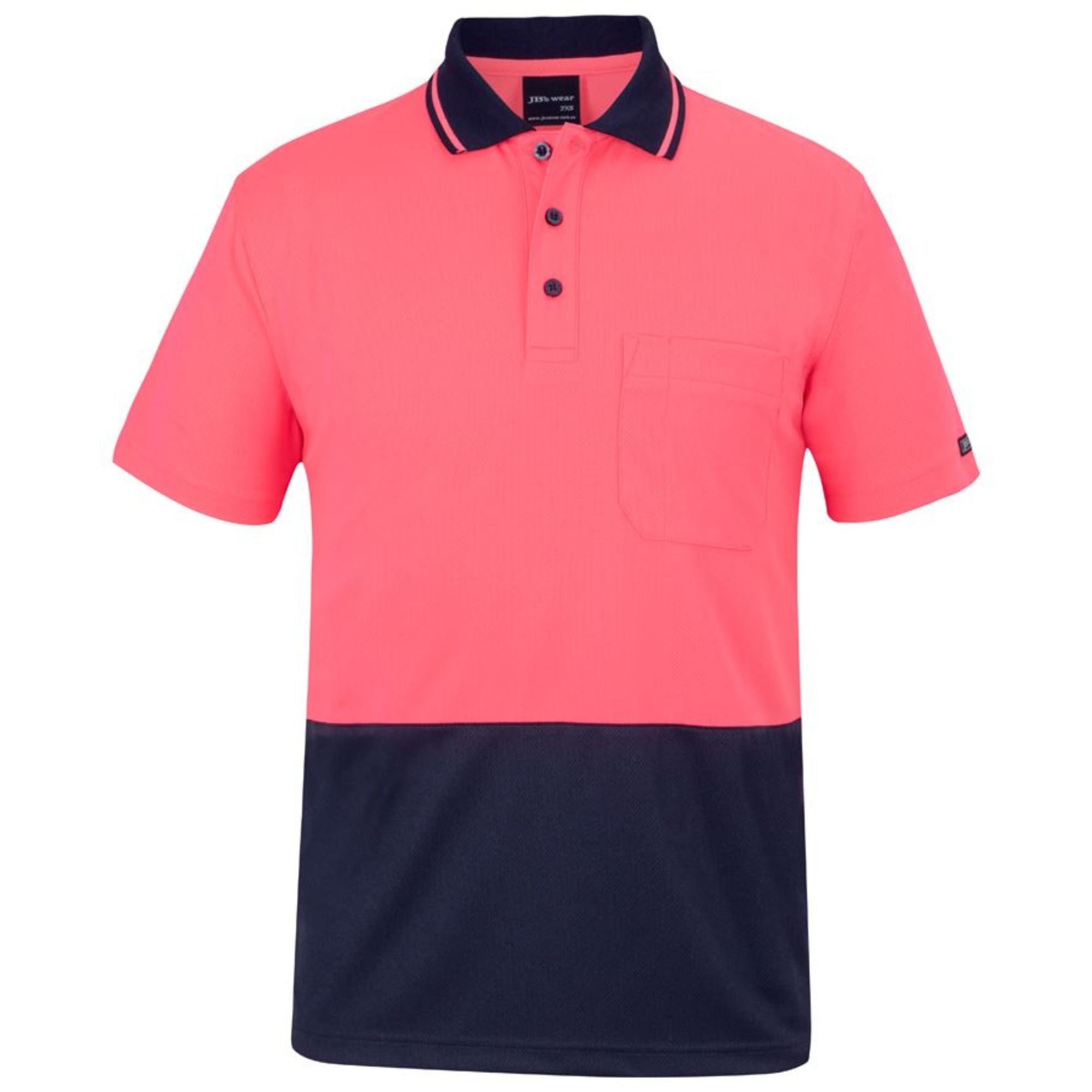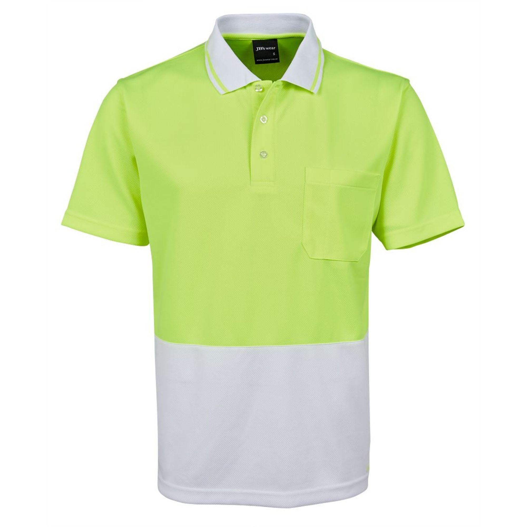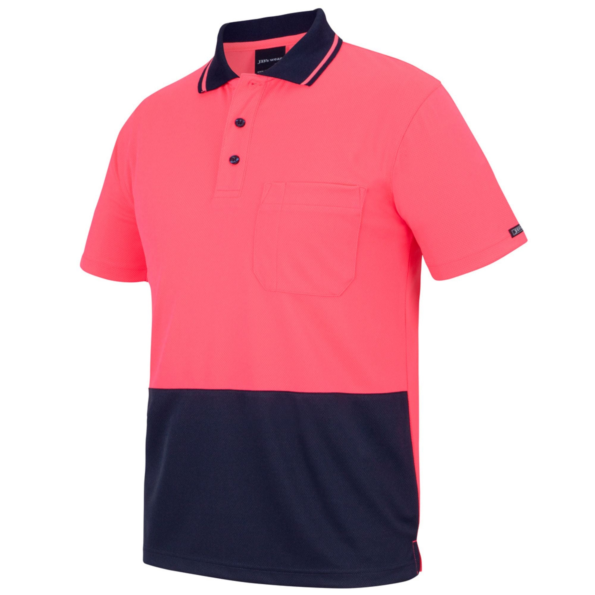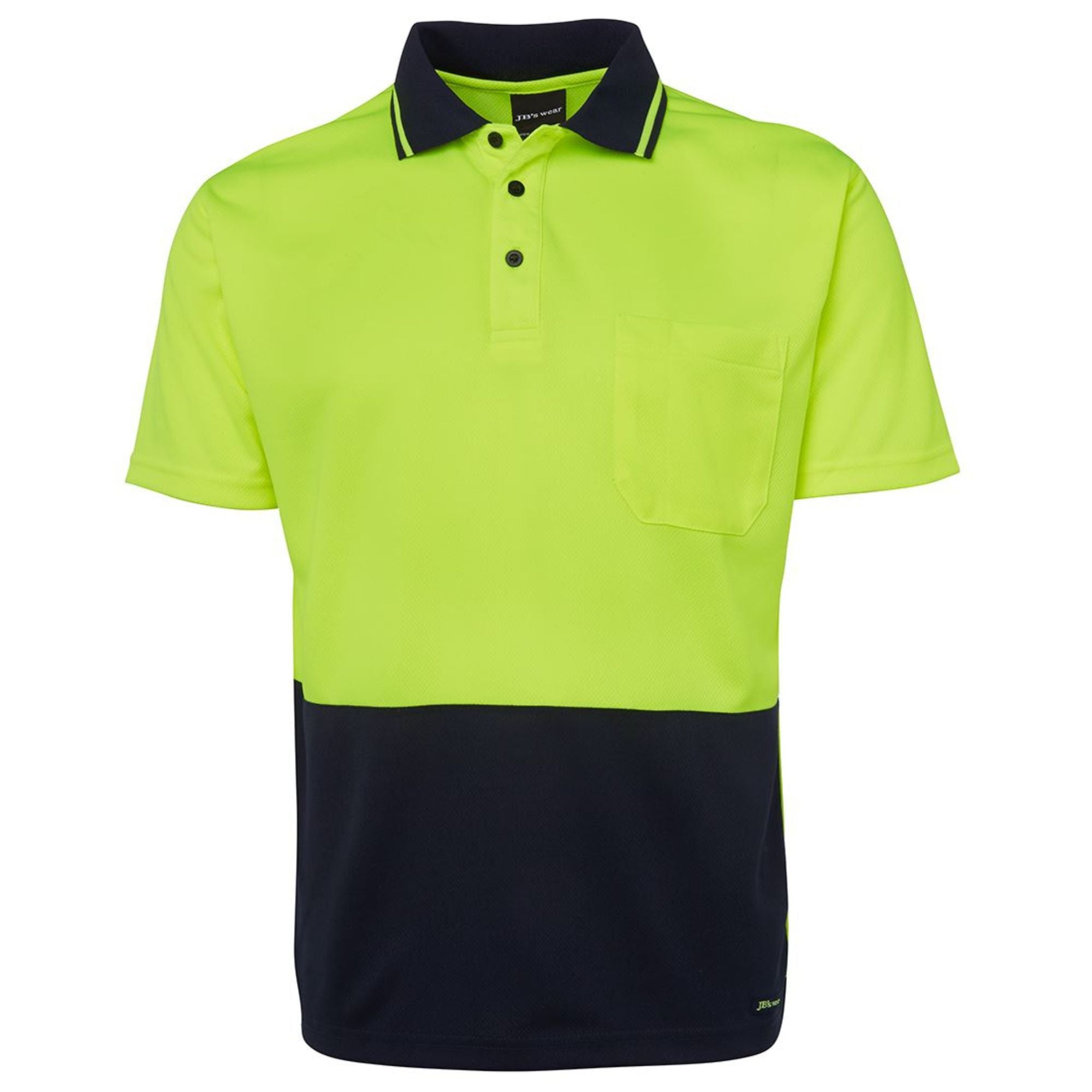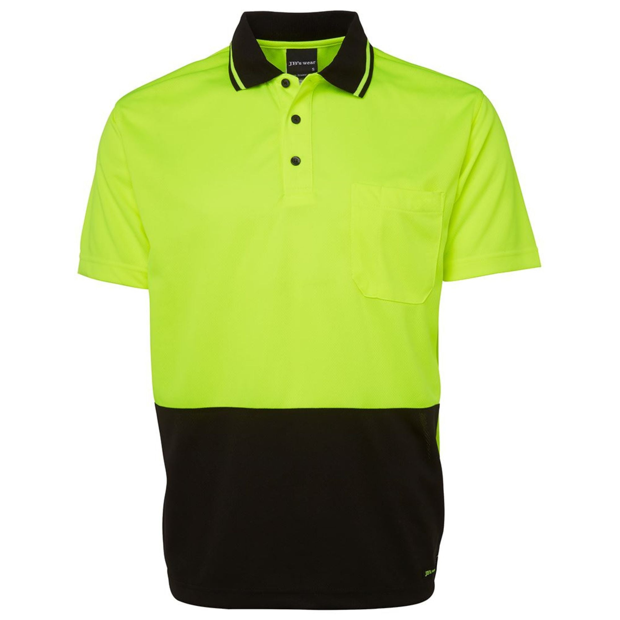 The Custom JB's Hi-Vis Non-Cuff Traditional Polo (6HVNC) from My Promo Shop is the definitive uniform choice for branded workwear for trades and startups prioritizing comfort and professional appearance. Made from a durable 160gsm micro-mesh fabric with 100% Polyester for longevity, this classic-fit polo features JB's Dri™ moisture-wicking technology to actively keep your team cool and dry on the job. The design includes a reinforced chest pocket with a pen insert, side splits, and an easy-care, quick-drying finish. It provides excellent sun safety with UPF 50+ protection and is certified for Day Use visibility, making it a reliable shirt for outdoor work across Australia.