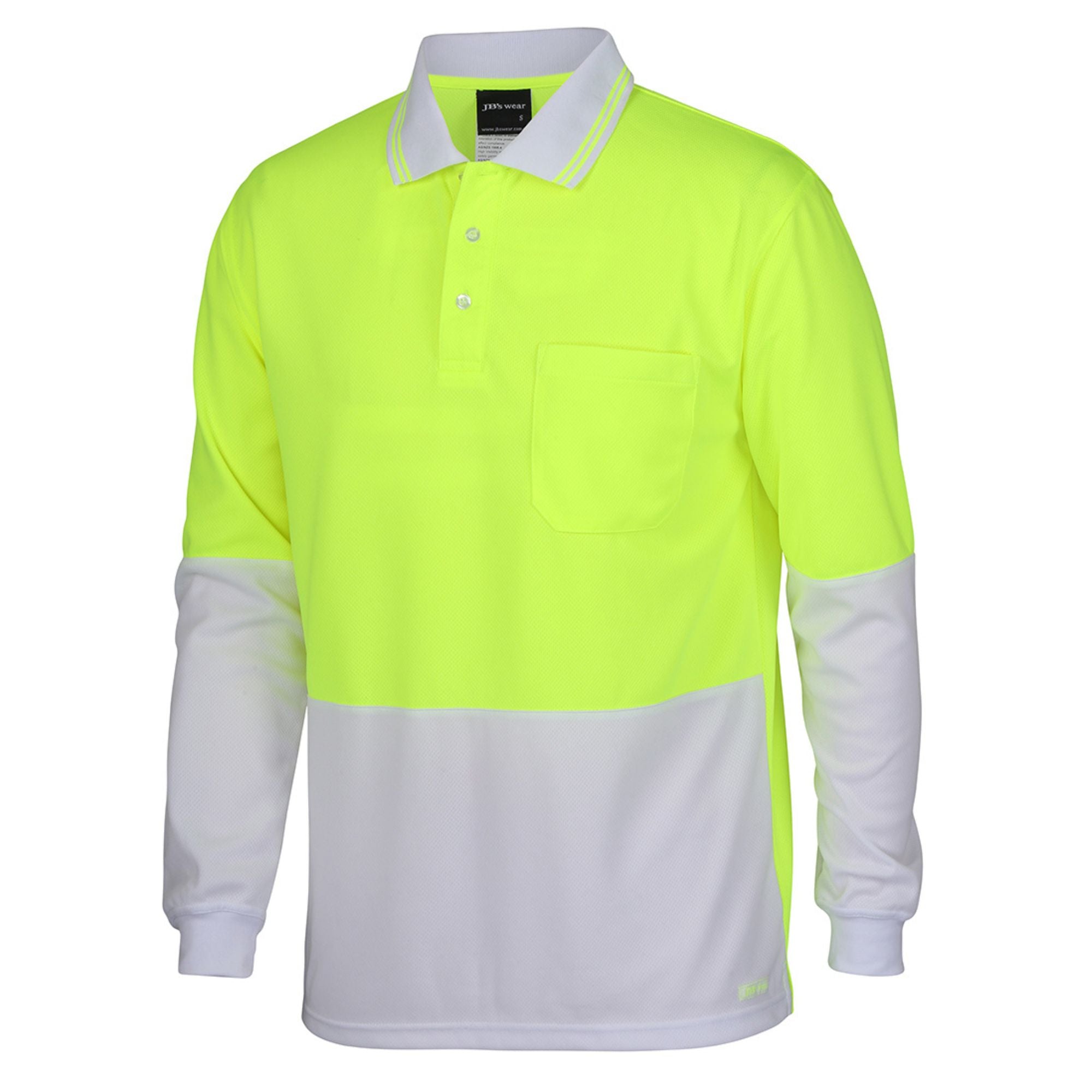 Elevate your team's look with the Custom JB's Wear Hi-Vis L/S Trad Polo, available at My Promo Shop. This polo is the perfect choice for branded workwear for trades and startups, combining high visibility with comfort and durability. Made from a lightweight, micro mesh fabric with JB's Dri™ moisture-wicking technology, it's designed to keep your team cool and dry all day long.