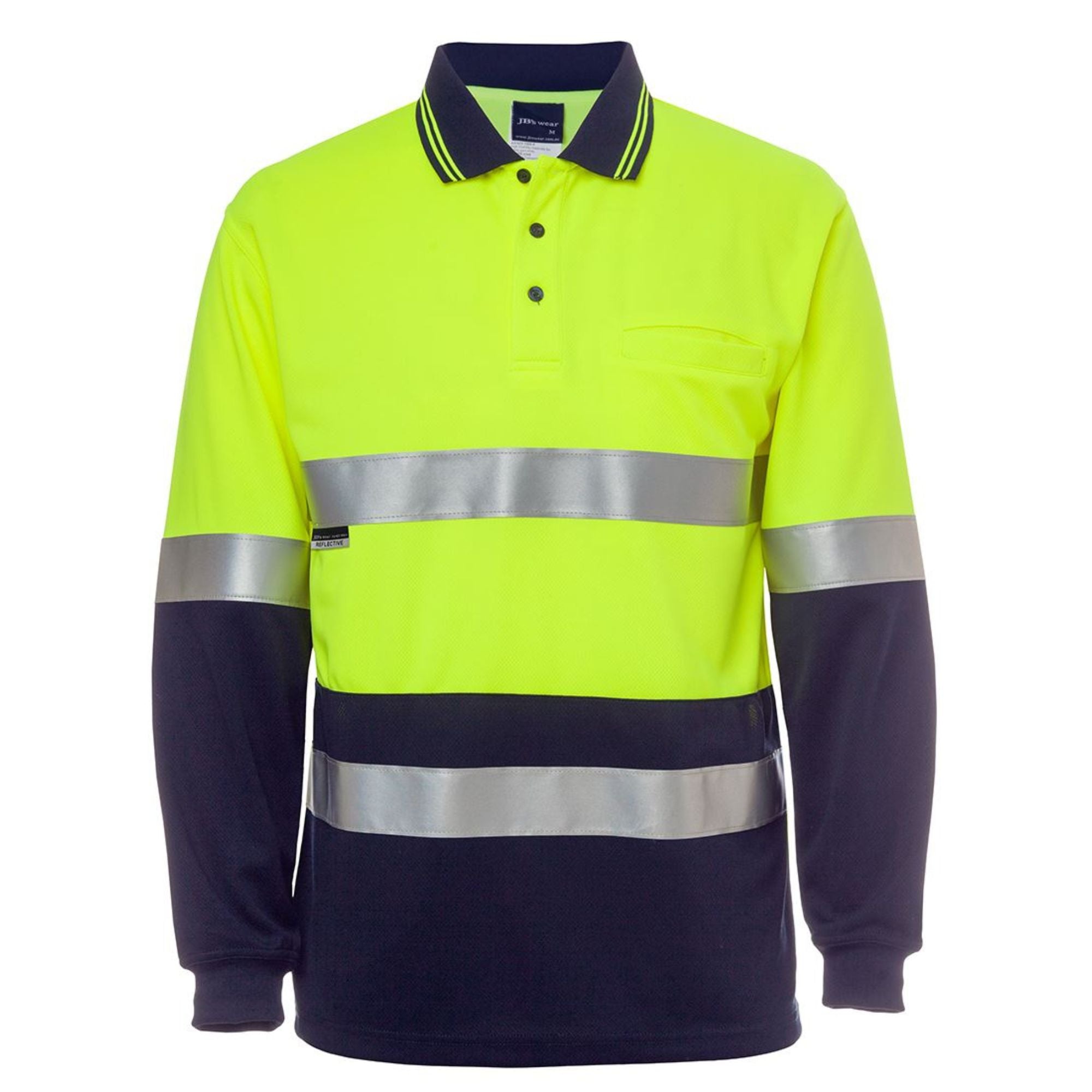 The JB's 6HMCB Hi Vis Long Sleeve Cotton Back Polo is the ultimate uniform choice for workers requiring continuous protection and comfort. Engineered for 24-hour safety, this polo Complies with Standards AS/NZS 1906.4:2023 and AS/NZS 4602.1:2011 for Day & Night (D+N) use, featuring highly durable reflective tape that stands up to 50 times domestic wash cycles.